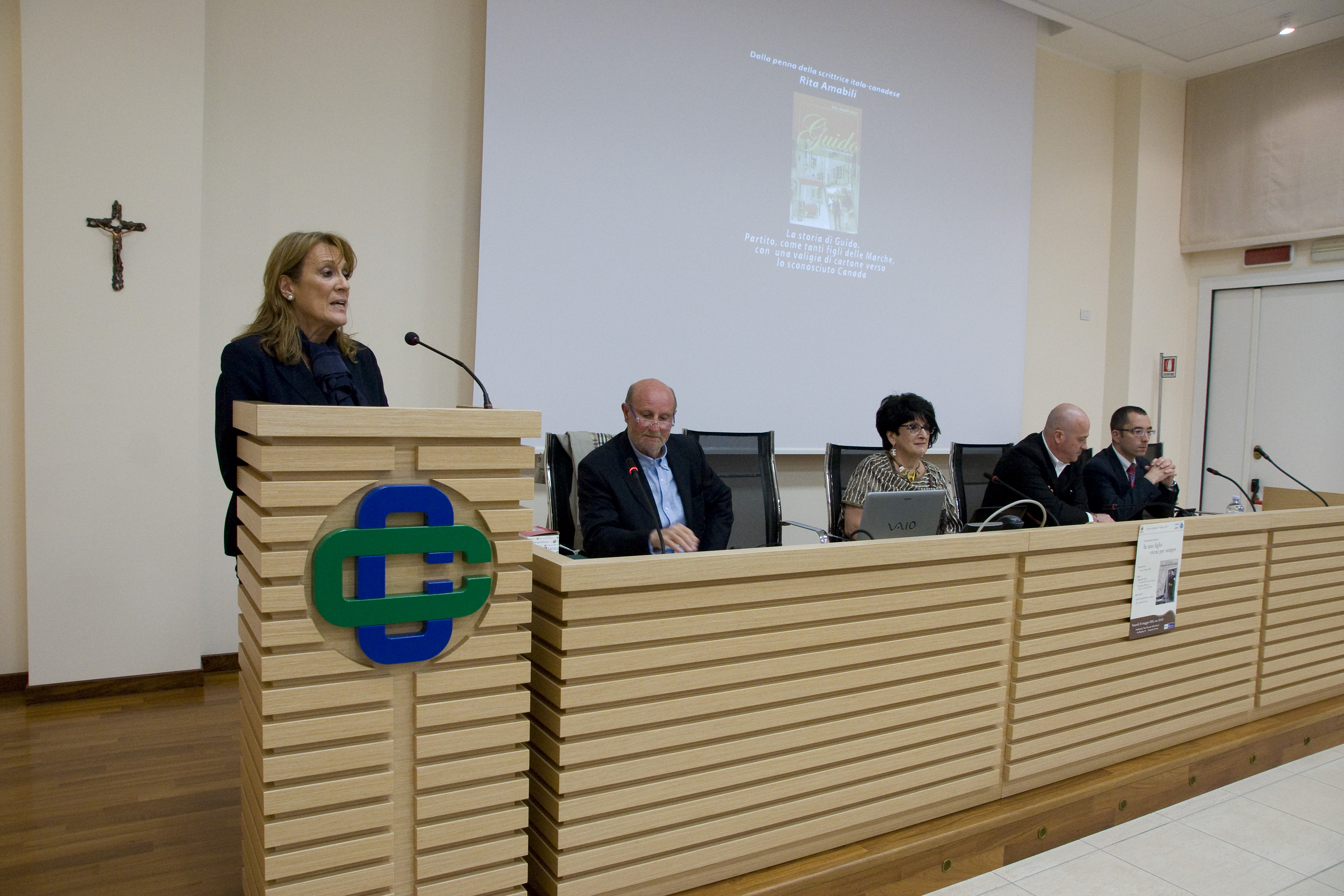 •Le 25 mai, à la salle conciliaire de la ville d’Offida, où est né le personnage principal de mon histoire: Guido, mon père